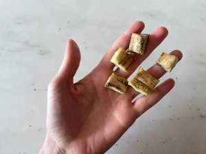 9 تا 12 ماهگی: در این سن، رشد مهارت گاز انبری در نوزاد (استفاده از انگشت شست و اشاره برای برداشتن وسایل) باعث می شود تا بتواند تکه های کوچک تری از غذا را بردارد. بنابراین، بادمجان های پخته شده و خرد شده را می توانید هم به تنهایی و هم در داخل غذاهای مختلفی مانند ماکارونی، املت و … به کودک خود بدهید.