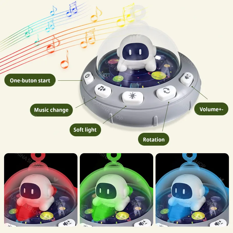 روی صفحه ی فضانورد دکمه های روشن/خاموش، موزیکال، چراغ، چرخش و کم و زیاد کردن صدا دارد.