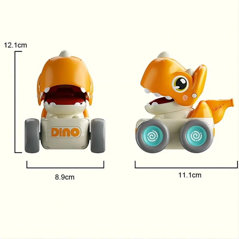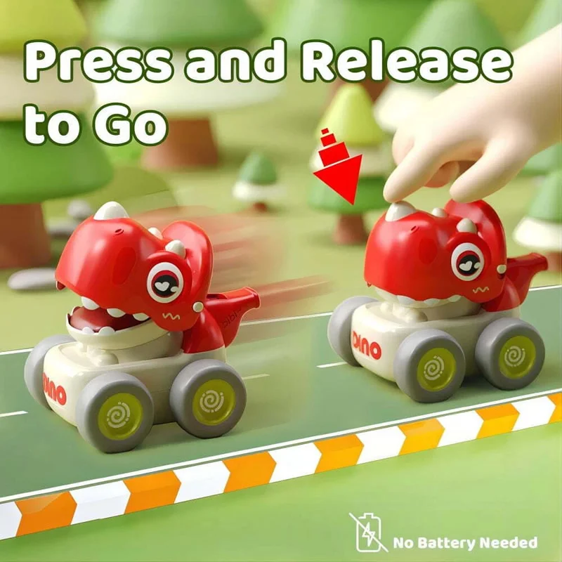 با فشار داد سر دایناسور، اسباب بازی رو به جلو حرکت می کنند.