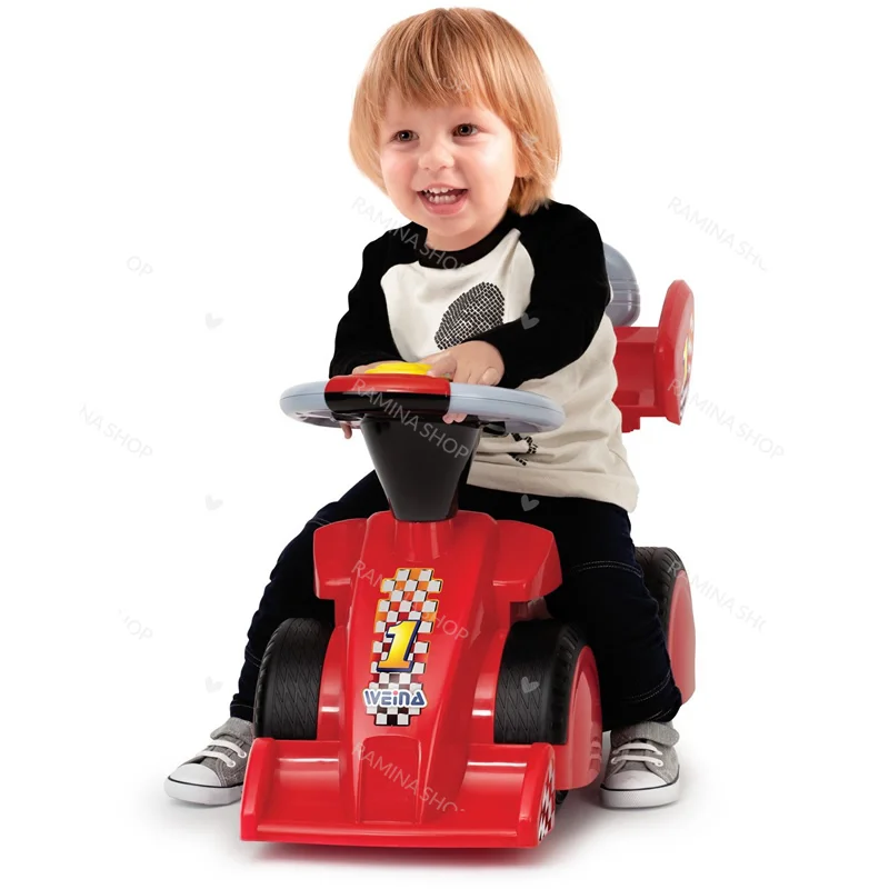 اسباب بازی سواری کودک 4 کاره طرح ماشین فرمول یک وینا Weina یک واکر، راکر، کالسکه و سواری است.
