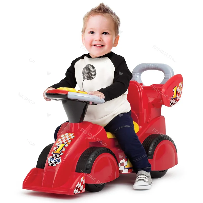 ویژگی های اسباب بازی سواری کودک 4 کاره طرح ماشین فرمول یک وینا Weina :