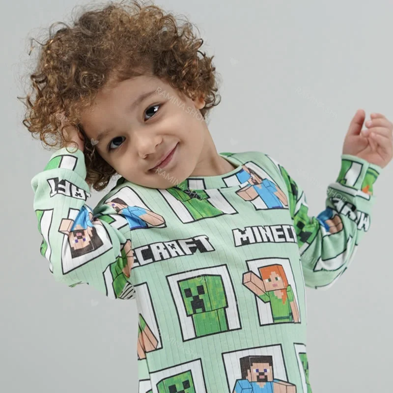 ست بلوز شلوار بچه گانه پسرانه ماینکرفت در سایزبندی متنوع برای 1 تا 7 سالگی عرضه می گردد.