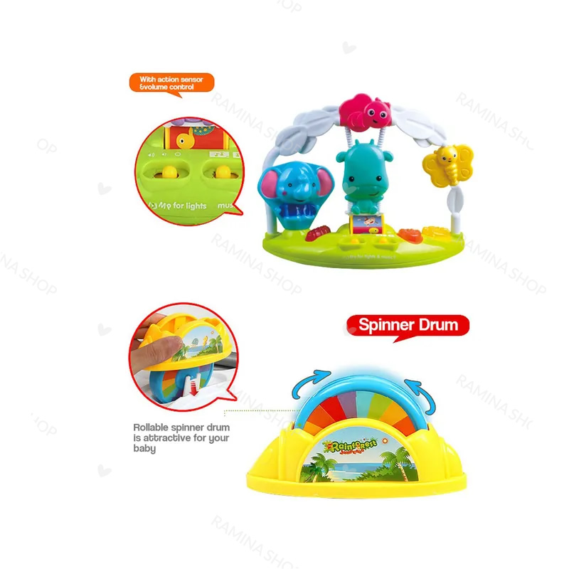جامپر موزیکال طرح جنگل سبز Konig kids مناسب برای نوزادان بالای 6 ماه است.