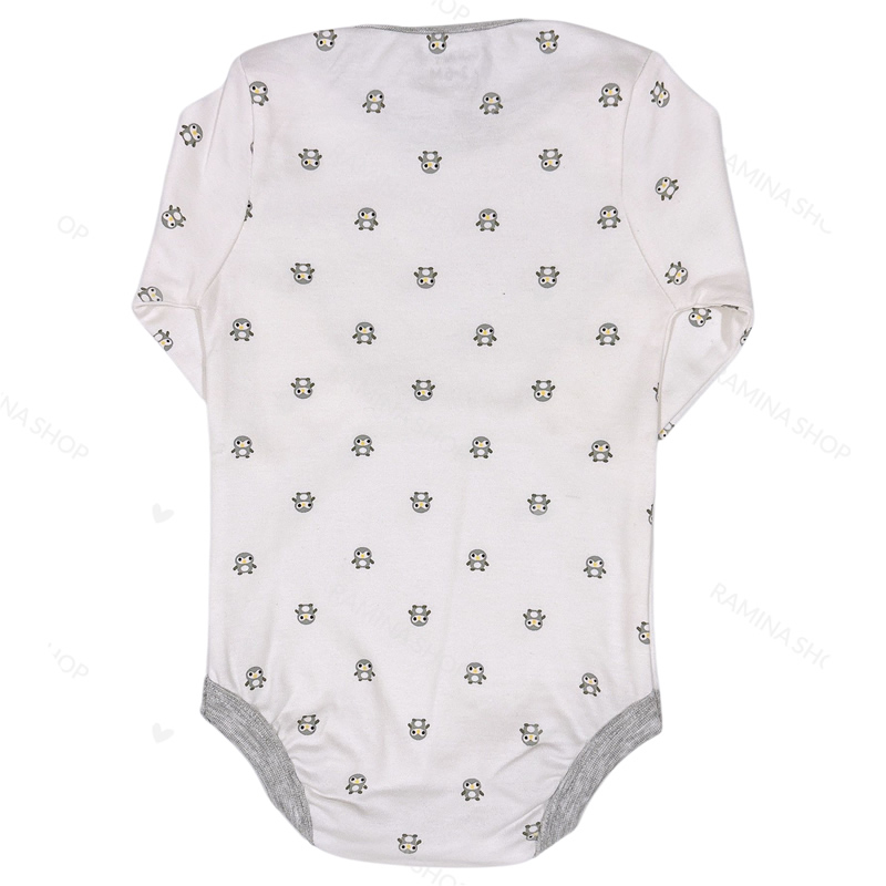 زیر دکمه دار آستین بلند نوزاد طرح پنگوئن بیبی فورلایف Baby4life مناسب برای سیسمونی دختر یا پسر.