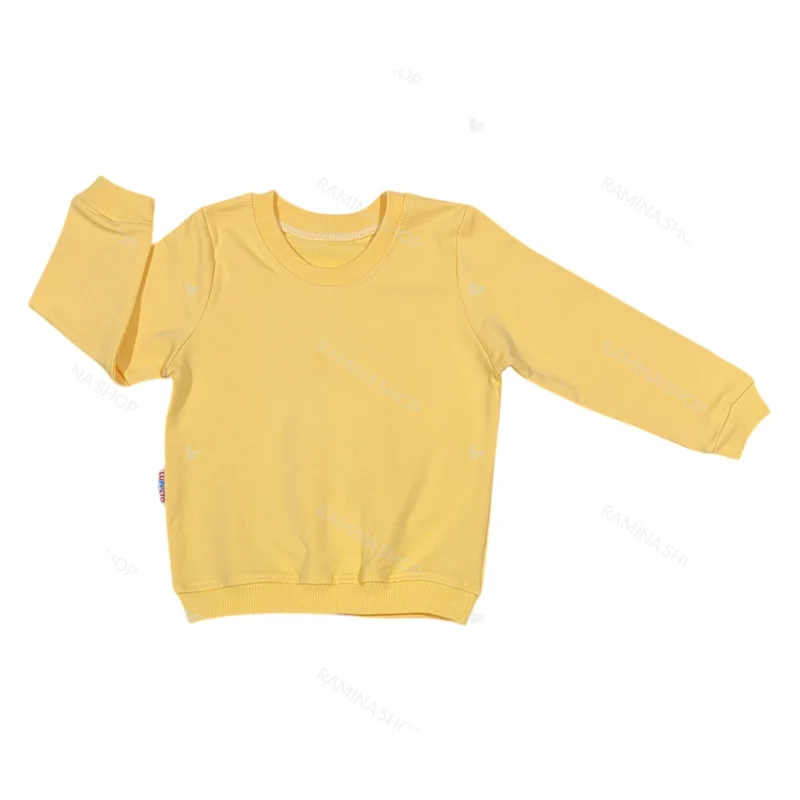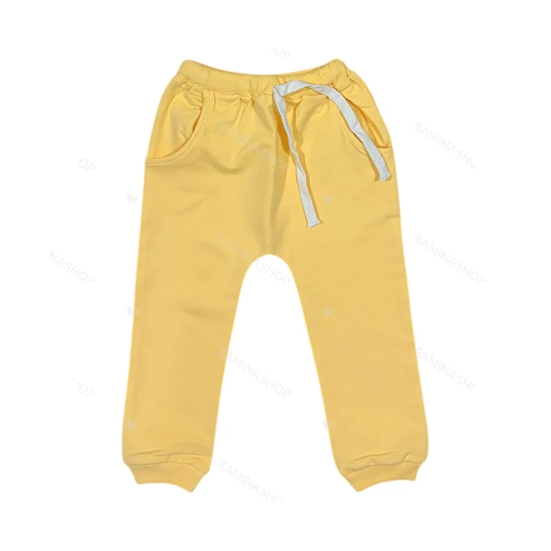 ست بلوز شلوار دورس بچه گانه رنگ لیمویی لوپتو luppeto یک لباس مناسب پاییزه و زمستانه برای دختر و پسر بچه بالای یک سال.