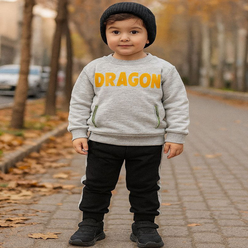 ست بلوز و شلوار پسرانه طرح دراگون طوسی Ruby محصول ترکیه.