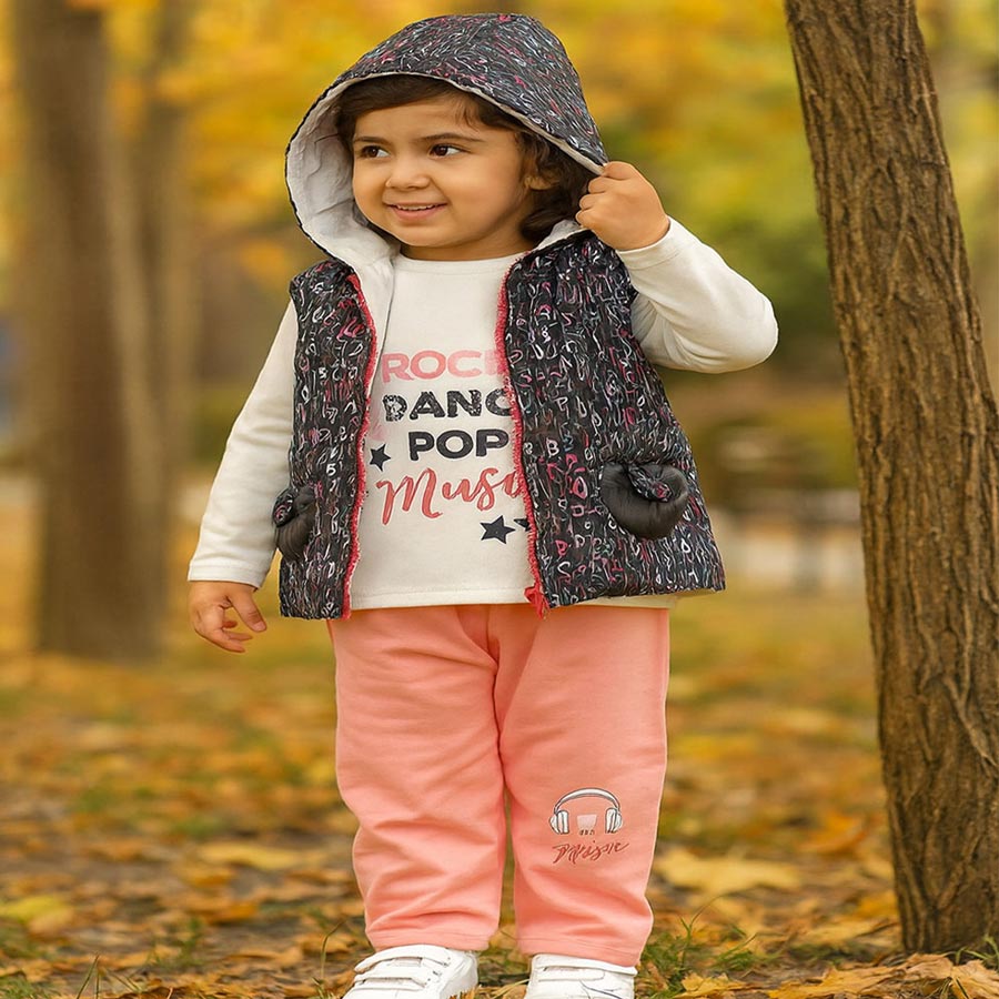 ویژگی های ست 3 تکه بلوز آستین بلند پافر و شلوار نوزاد دخترانه گلبهی Vital :