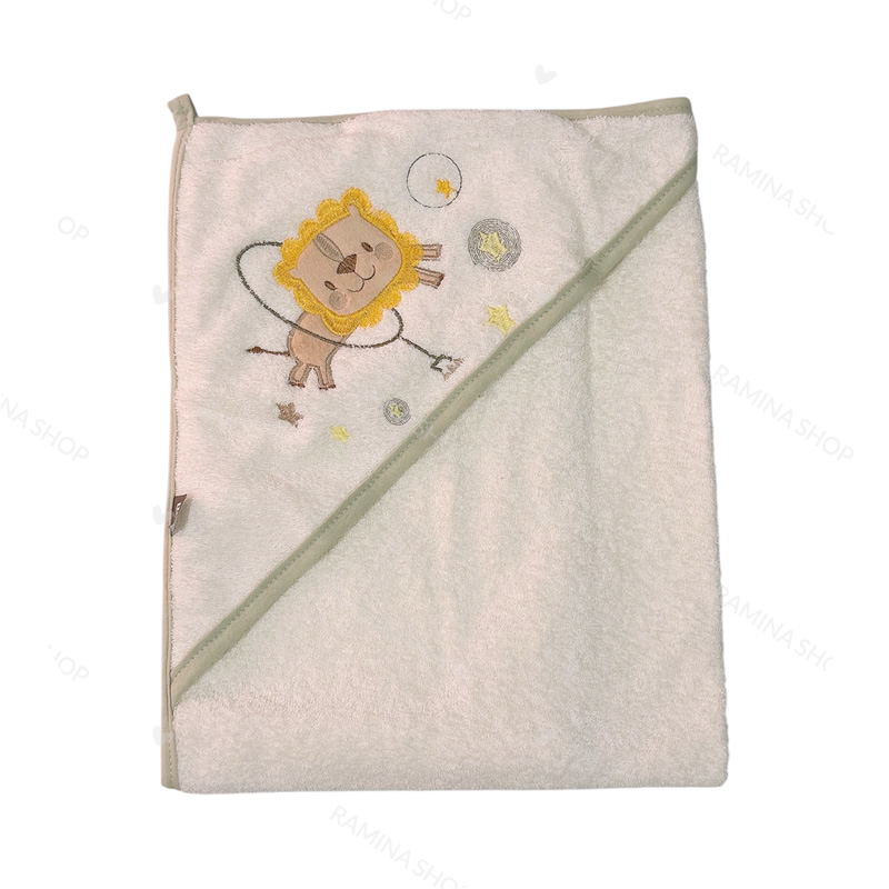 این ست شامل حوله تن پوش، حوله دورپیچ کلاه دار، لیف و یک جفت پاپوش نوزادی است.