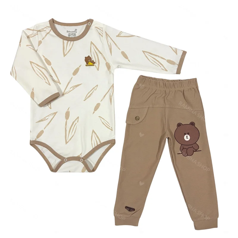 ست زیردکمه ای بلند و شلوار کودک طرح بامبو به آوران Behavaran با طرحی جذاب و دوست داشتنی برای دختر یا پسر شما.
