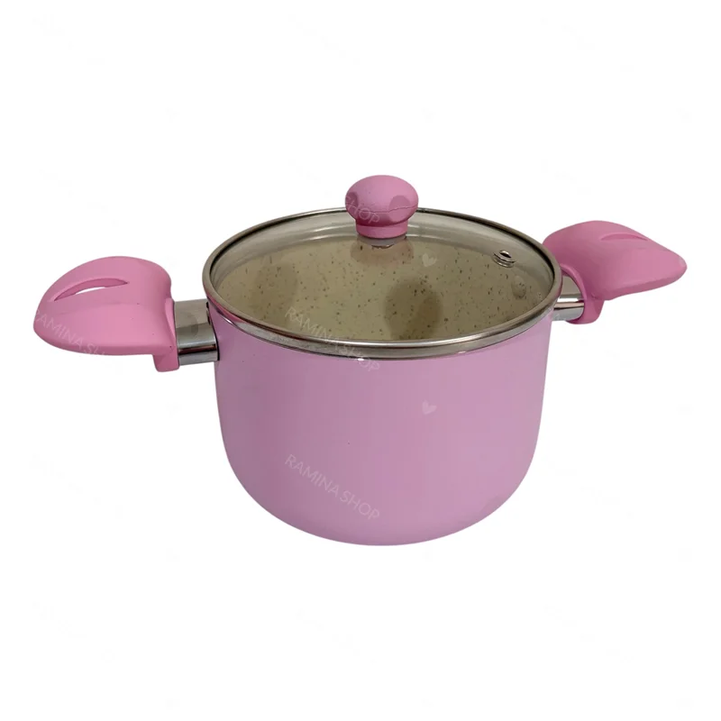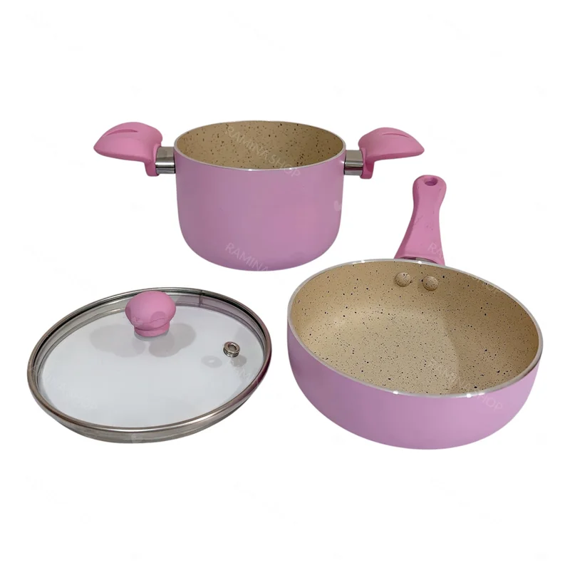 ست قابلمه و تابه بزرگ کودک 3 پارچه مدل Helena14 صورتی هرا Hera