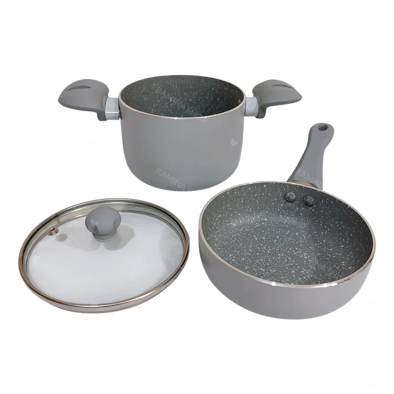 ست قابلمه و تابه بزرگ کودک 3 پارچه مدل Helena14 طوسی هرا Hera