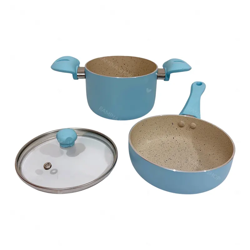 ست قابلمه و تابه بزرگ کودک 3 پارچه مدل Helena14 آبی هرا Hera