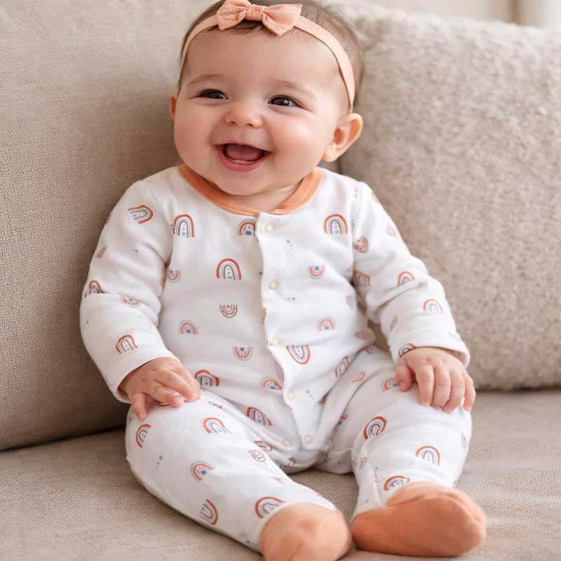 سرهمی جوراب دار نوزادی دخترانه طرح رنگین کمان بی ارگانیک Biorganic