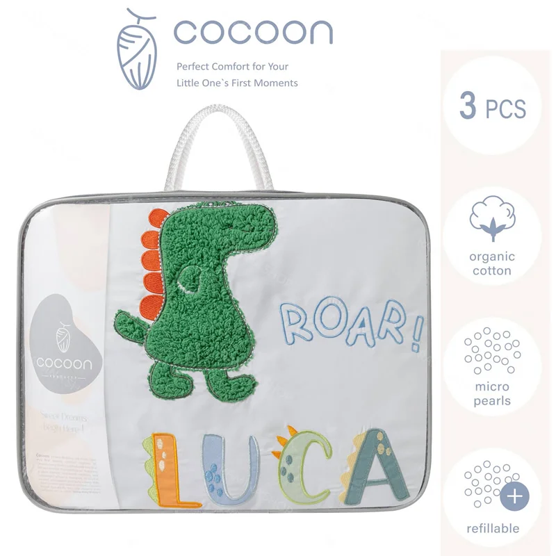 سرویس خواب سه تکه نوزادی Cocoon طرح دایناسور یکی از بهترین انتخابها برای والدینی است که به کیفیت، ایمنی و طراحی زیبا در سیسمونی نوزاد اهمیت میدهند.