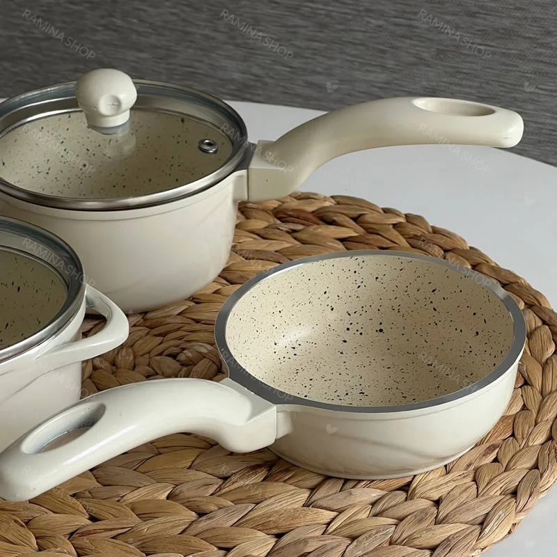این سرویس دارای یک قابلمه، تابه و شیر جوش سایز 12 سانتی متری است.