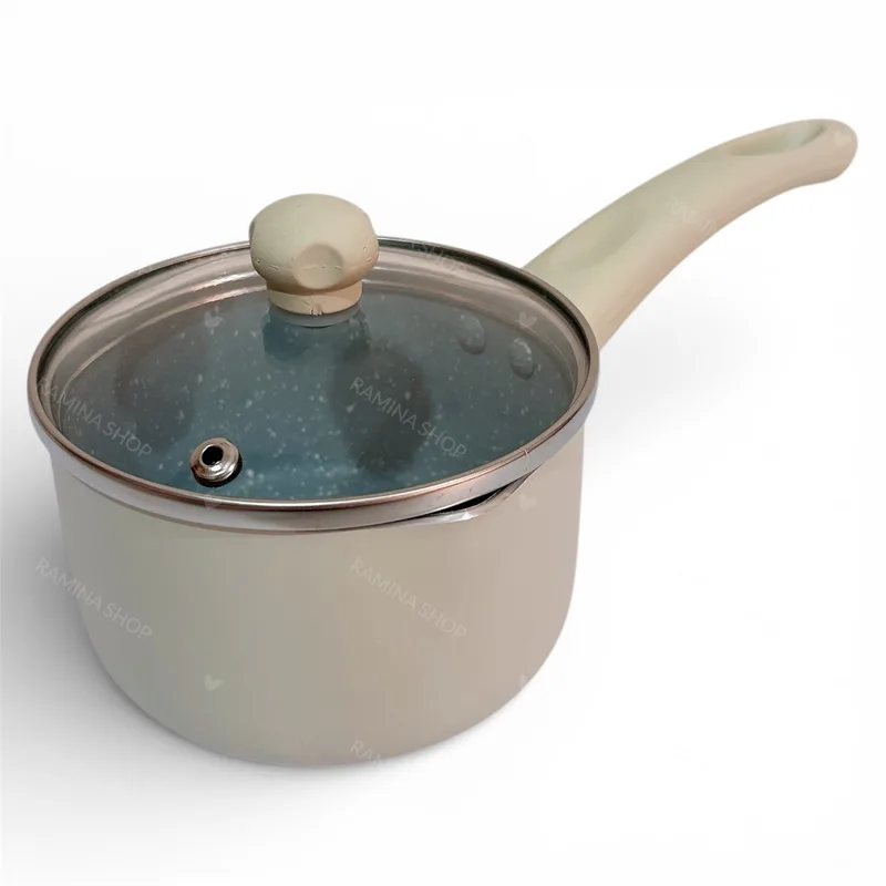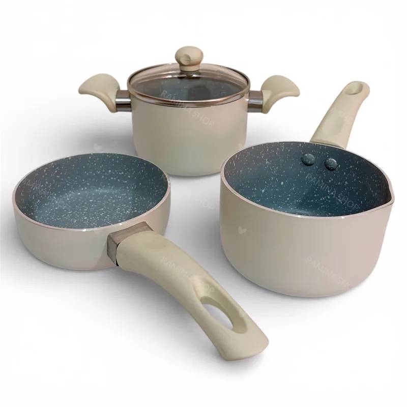 این سرویس دارای یک قابلمه، تابه و شیر جوش سایز 12 سانتی متری است.