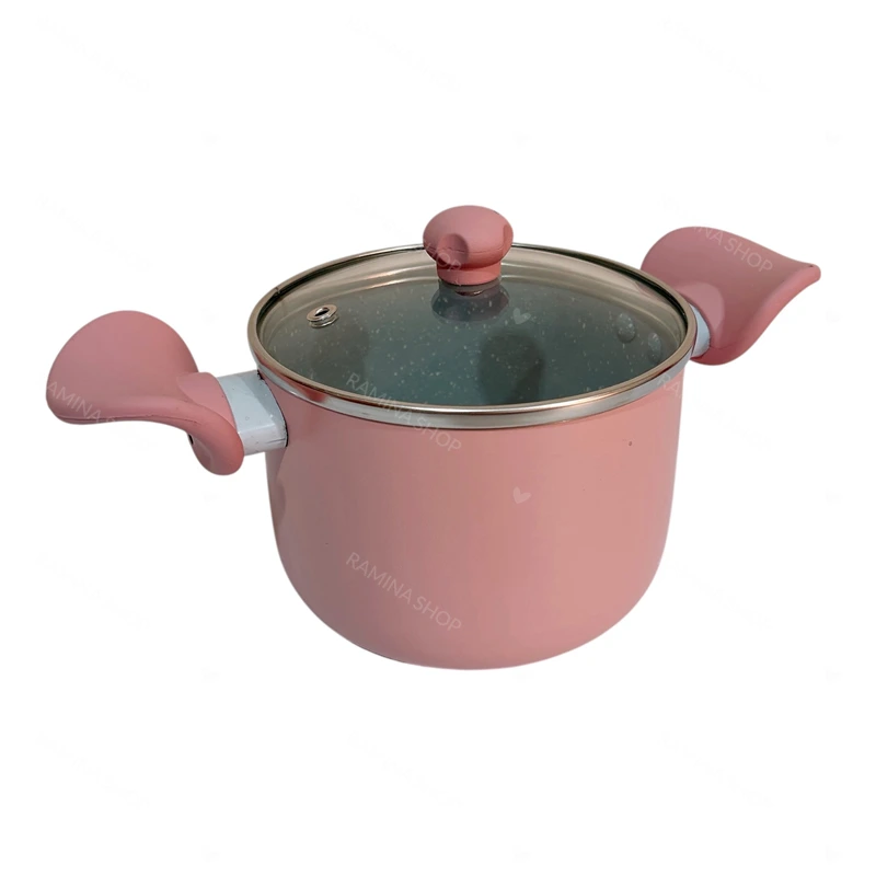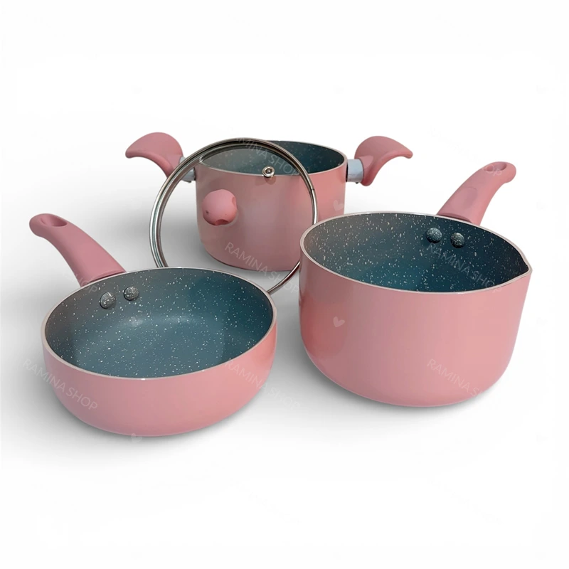 سرویس قابلمه کودک گرانیتی 4 پارچه مدل نلیا صورتی عروس Aroos