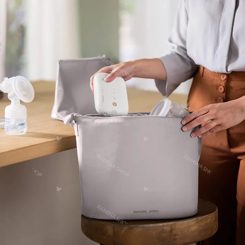 یک عدد کیف بزرگ برای قرار دادن و حمل همه ی لوازم شیردوش و یک عدد کیف کوچک تر برای سایر وسایل دارد.