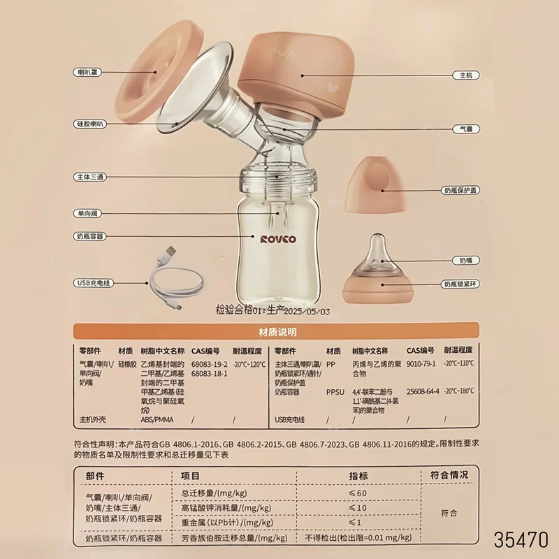 شیردوش برقی رووکو Rovco مدل قابل شارژ یک محصول مناسب برای دوران شیردهی نوزاد.