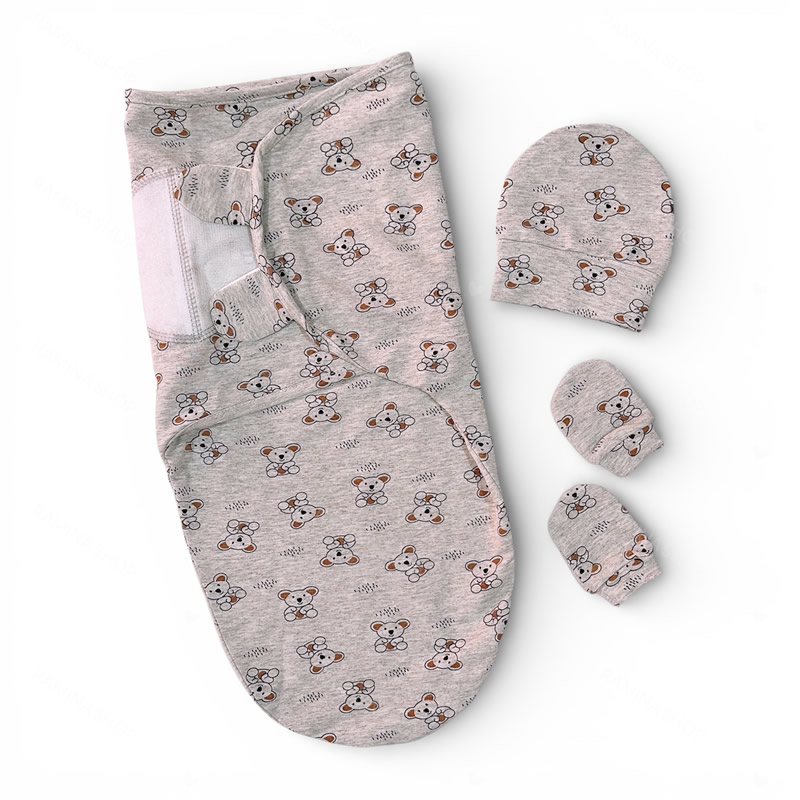 ست قنداق، کلاه و دستکش نوزاد سری لبوبو طرح کوآلا بیبی فورلایف Baby4life