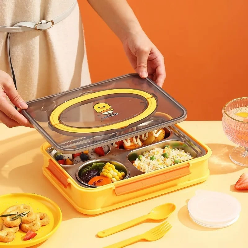 لانچ باکس کاسه دار طرح جوجه Ben Duck یک ظرف غذای ایده آل مناسب با چهار قسمت گوناگون است.