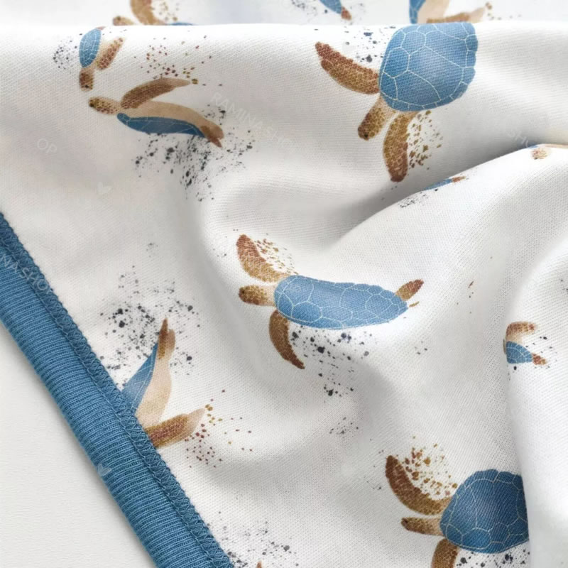 پتوی نخی چهار فصل نوزاد طرح لاک پشت بی ارگانیک Biorganic