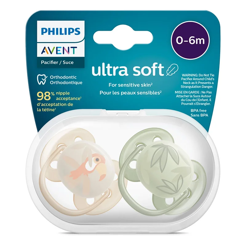 پستانک التراسافت 0-6 ماه نوزاد اونت با طرح طوطی اونت AVENT در بسته بندی، دو عددی با کیفیت عالی برای فرزند شما.