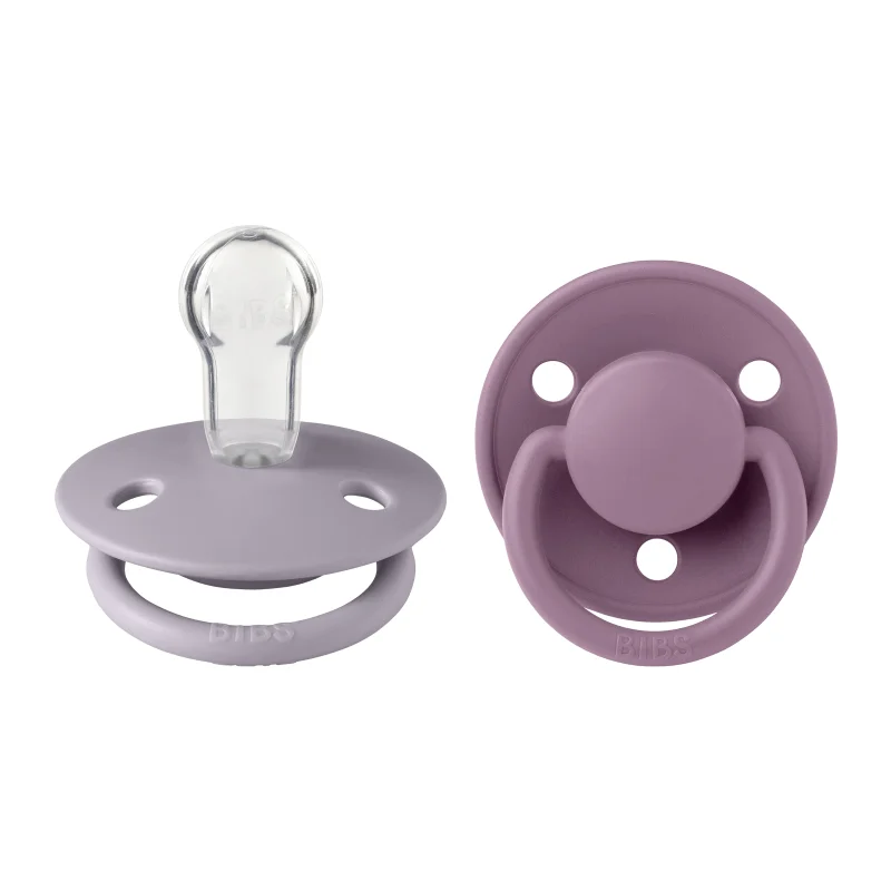 پستانک گرد نوزاد 0 تا 36 ماه De Lux طوسی و بنفش 2 عددی بیبس Bibs مناسب برای نوزادان از بدو تولد است.