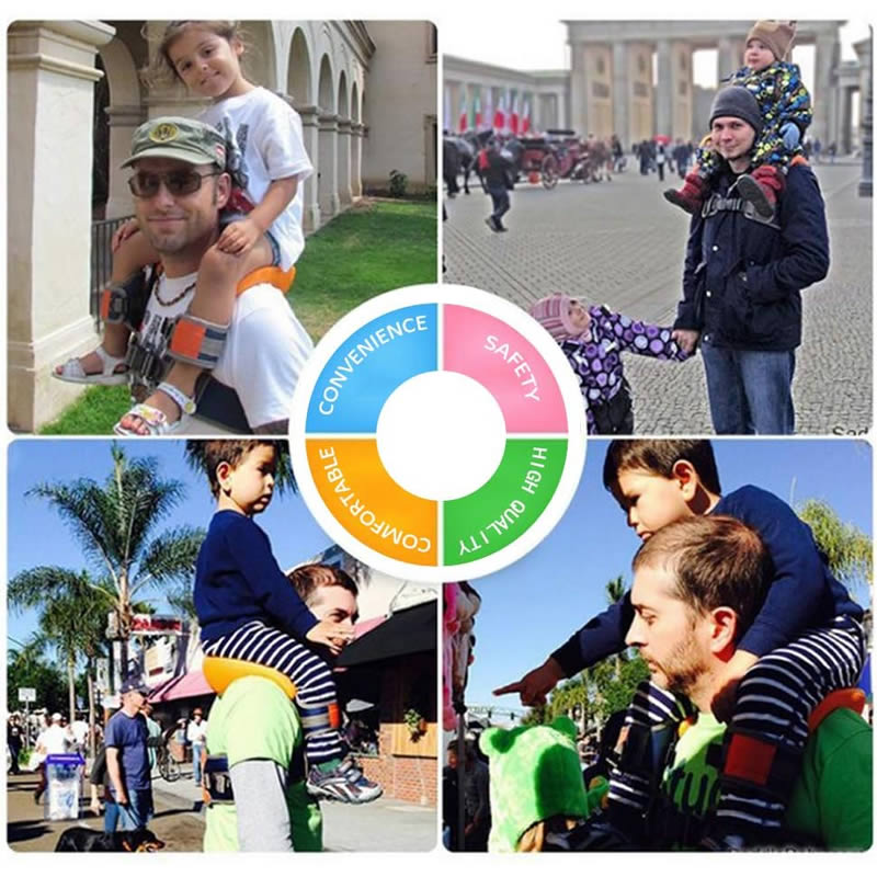 نشیمن کودک دور گردن پدر یا مادر قرار می گیرد.