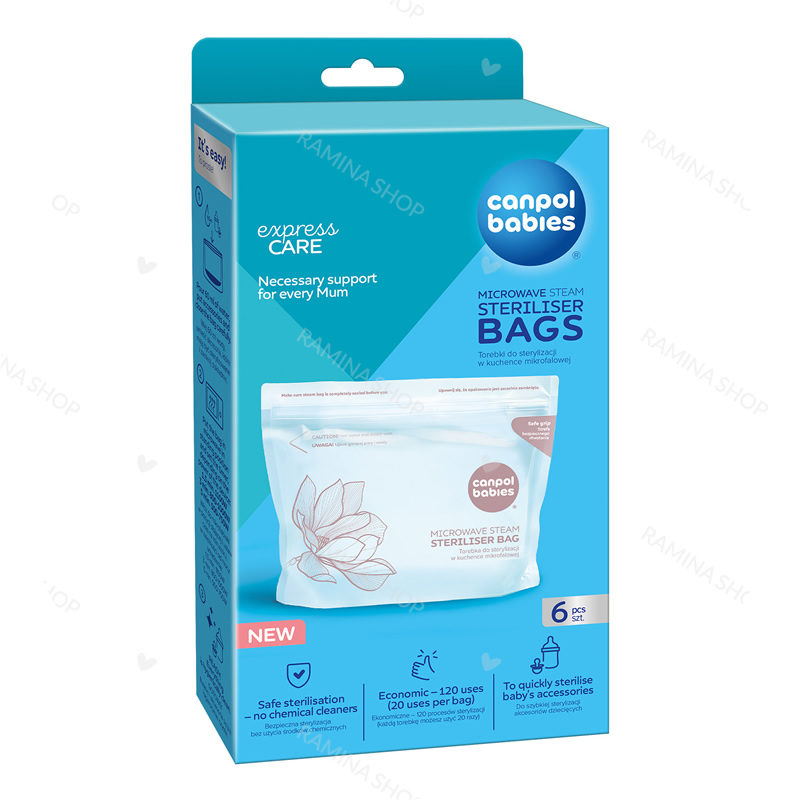 کیسه استریل مایکرویوی 6 عددی کانپول Canpol محصولی برای بهداشت و پاکیزگی وسایل دلبند شما.
